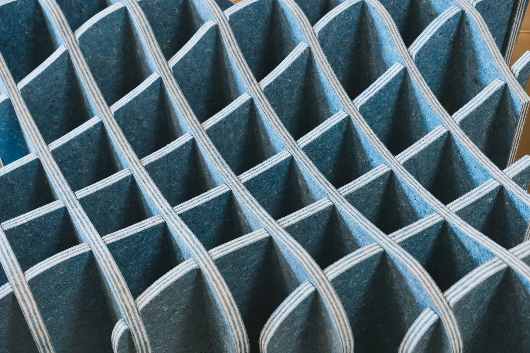 TEXLAM®︎は、廃棄繊維を色ごとに分別し、樹脂と組み合わせることで、
